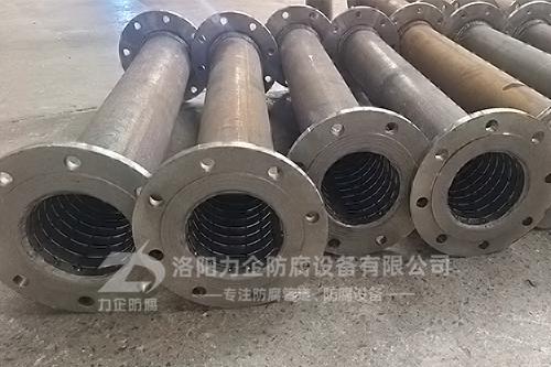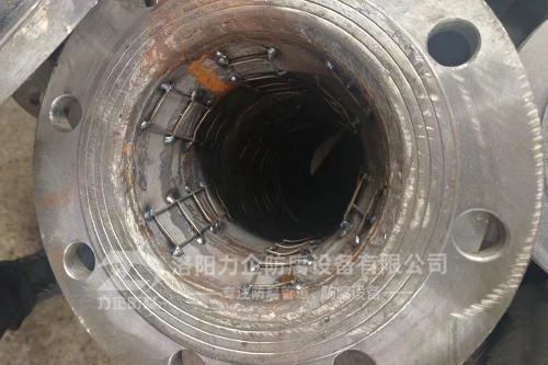在有負壓的工況下,使用鋼襯四氟管需要采用模壓工藝制作,為了避免在有負壓工況下使用出現(xiàn)狀況,在鋼襯四氟管內(nèi)壁可加鋼絲網(wǎng),增加其內(nèi)襯的牢固性。下面我們來看一下生產(chǎn)過程中的鋼襯四氟管是什么樣子的: